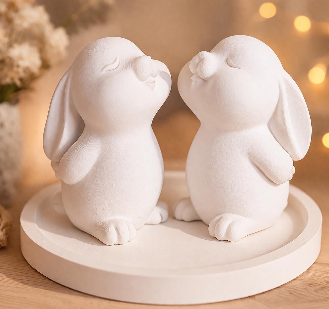 Set: 2 rabbits / round plate
