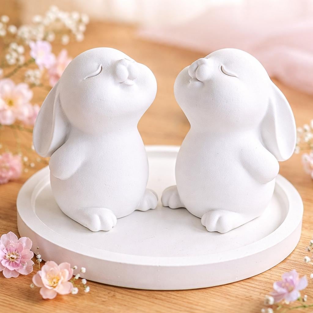 This lovingly hand-cast pair of rabbits brings a calm and stylish spring atmosphere to your home.
