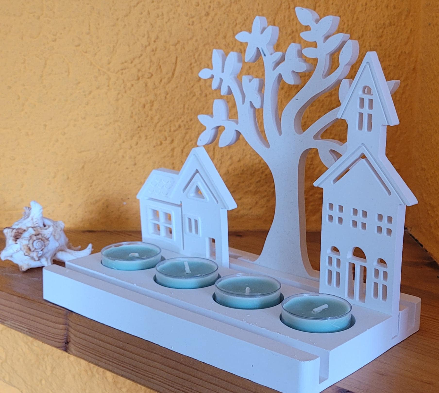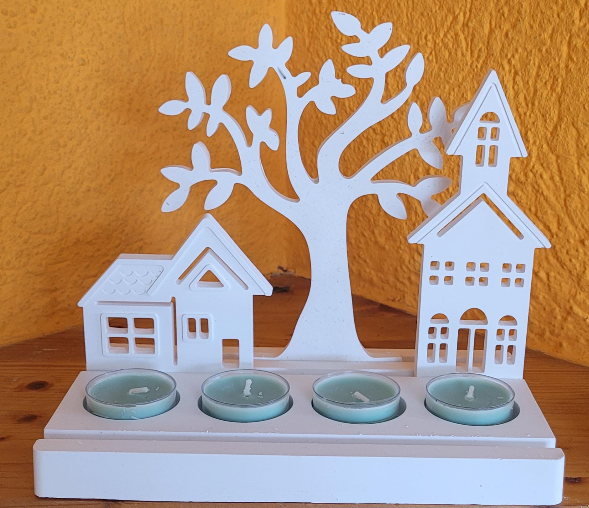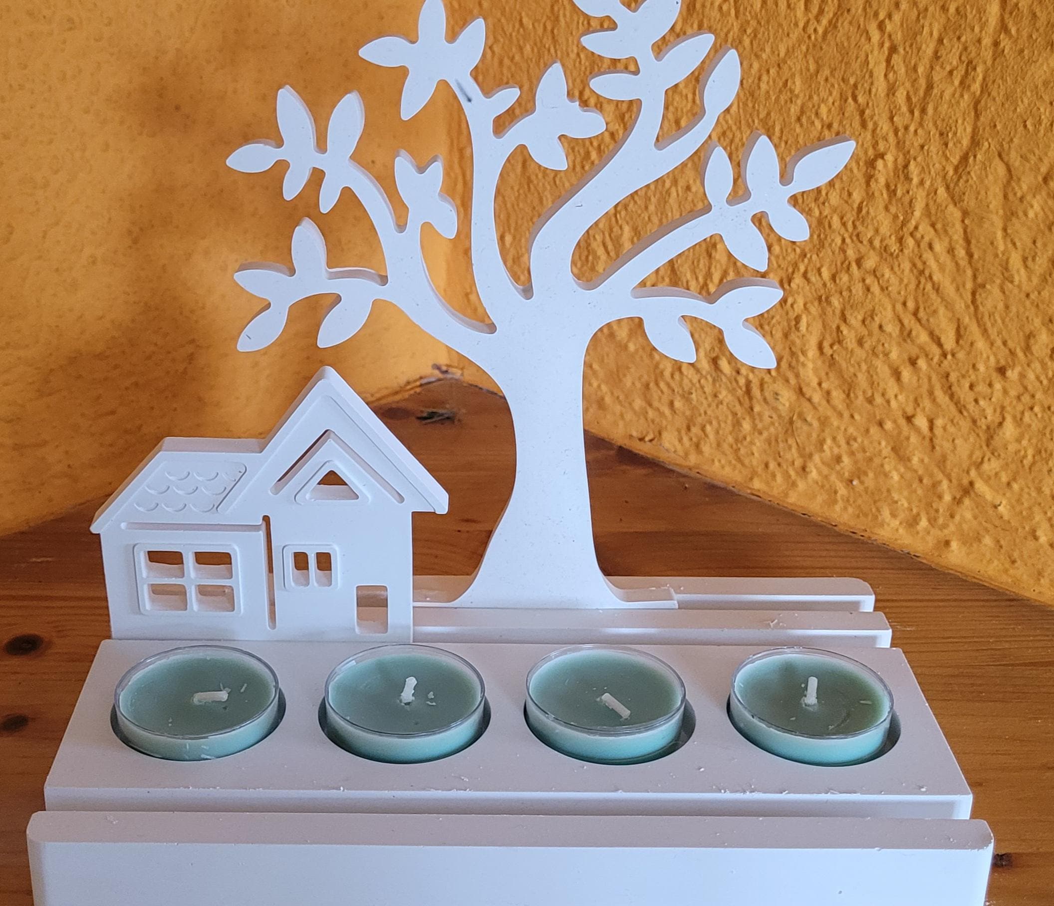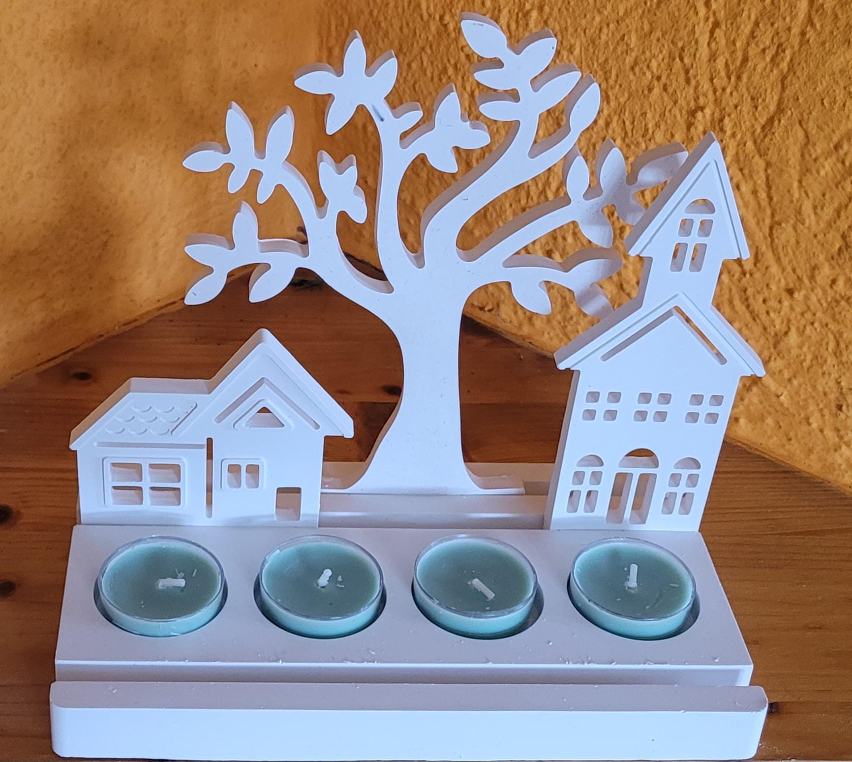Decoration - Inserts - 4 Tealight Holders - Raysin - White - Hand-Poured - Countryside Decor in Scandinavian Style - Gift Idea - Home Accessory