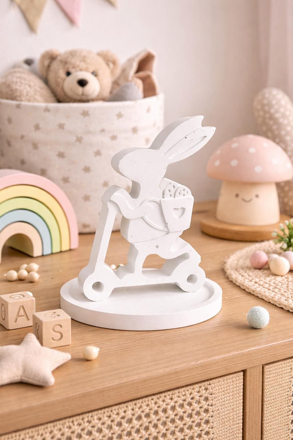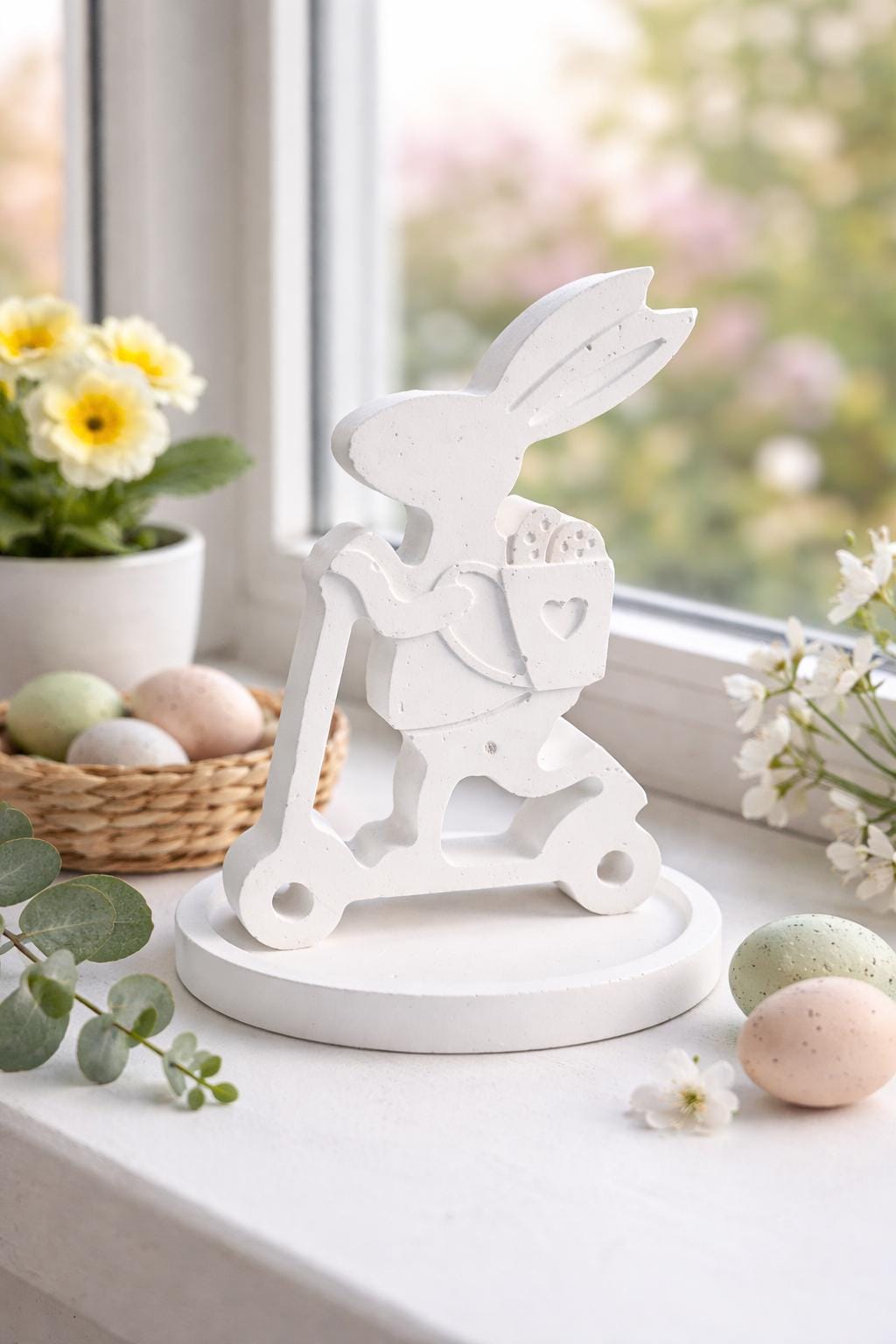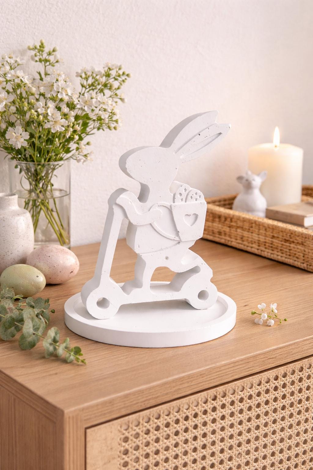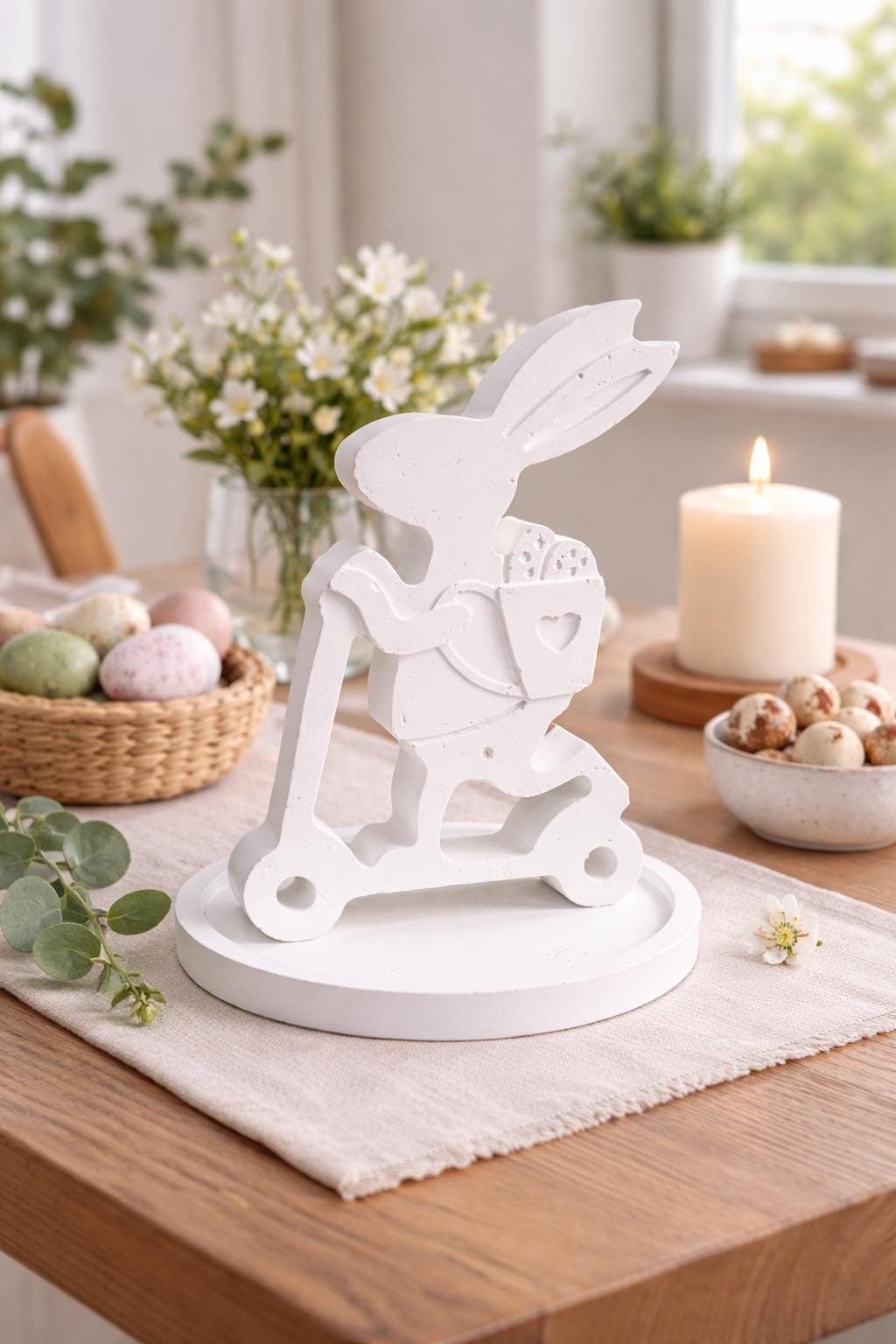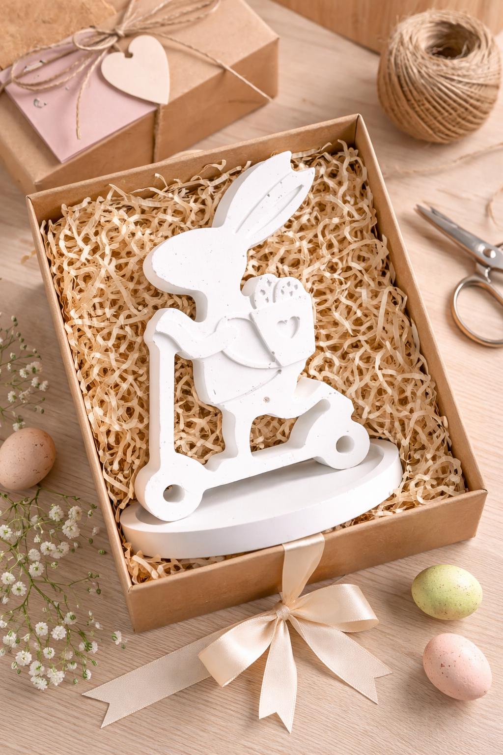 Hand-cast Easter bunny on a scooter – Scandinavian decor | Minimalist spring decor | Gift idea