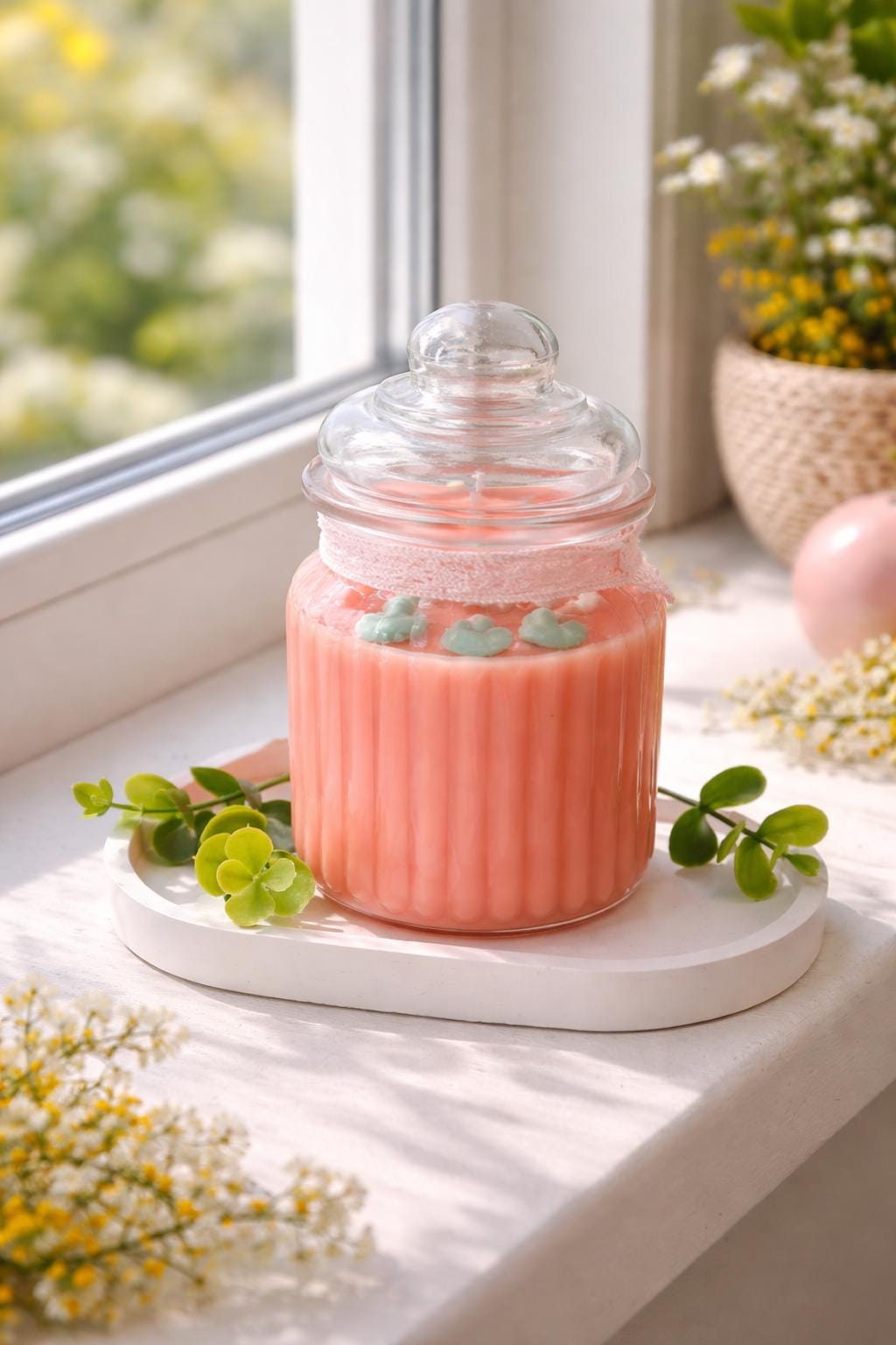 Diese wunderschöne Duftkerze vereint stilvolles Design in einem geriffelten Glas mit Deckel mit einem fruchtig-frischen Dufterlebnis.