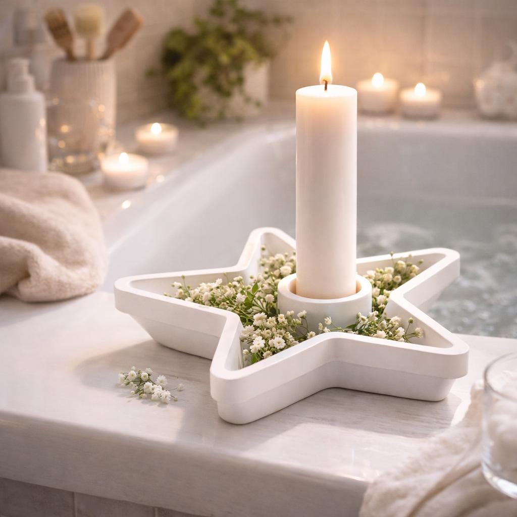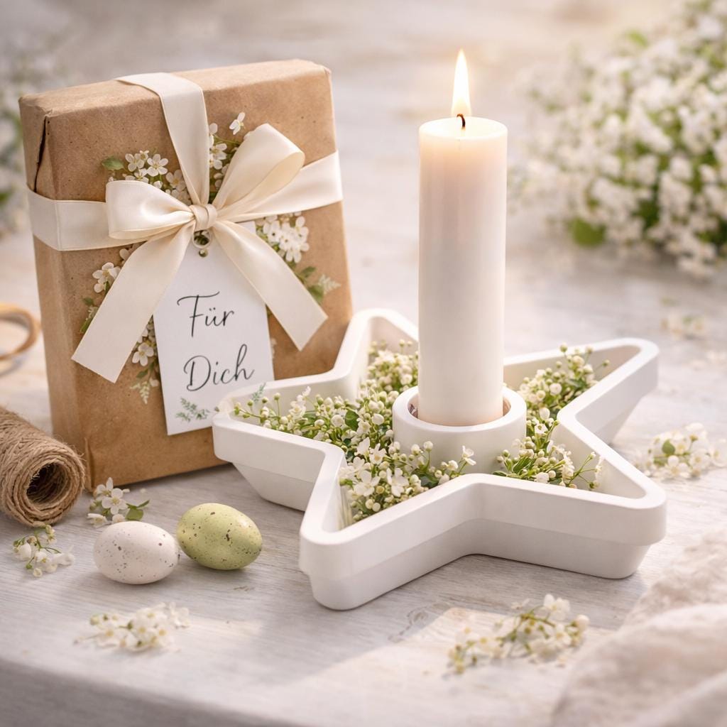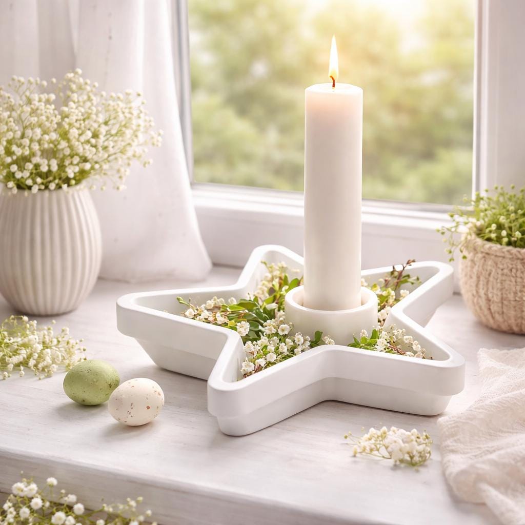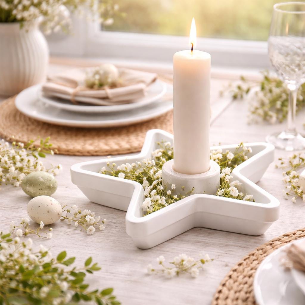 White Raysin Star Candle Holder | Minimalist Decor | Hand-Poured | Modern Taper Candle Holder | Gift Idea for Women - Easter & Spring