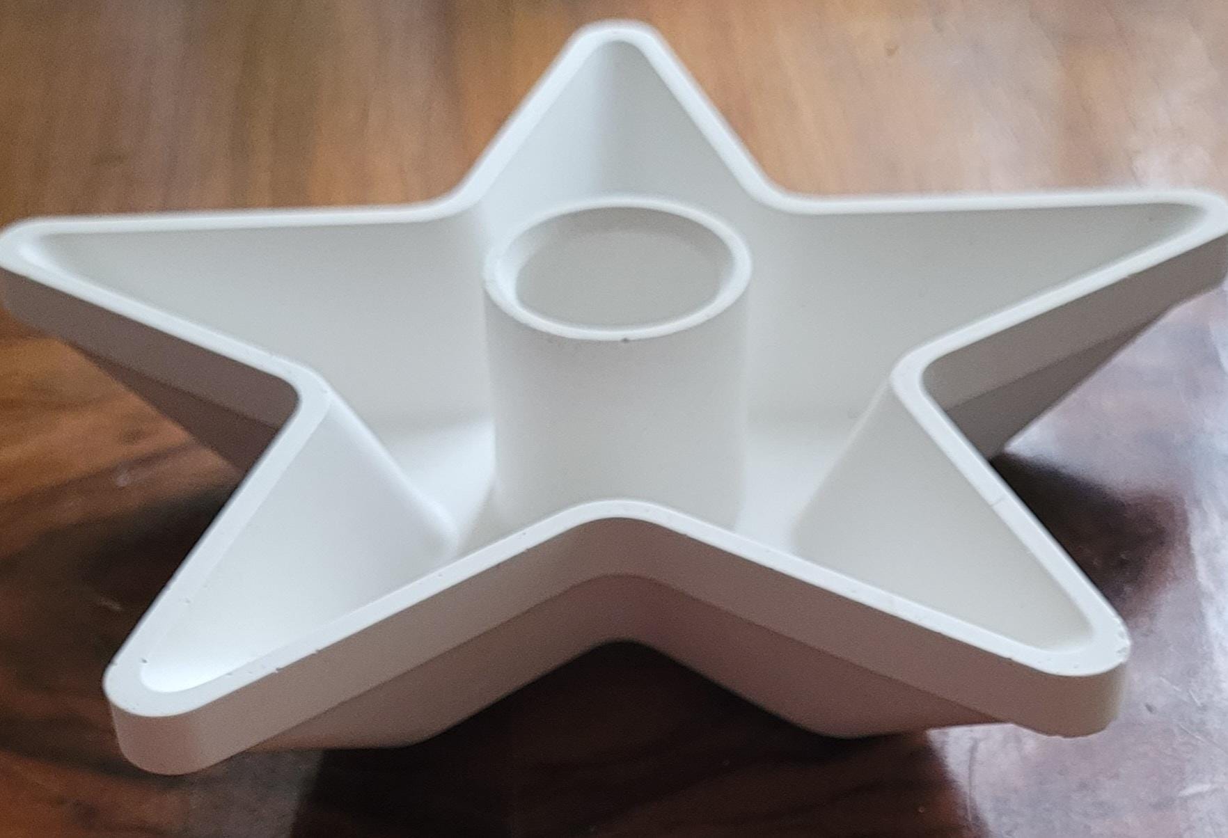 Give your home a stylish, tranquil atmosphere with this hand-poured, star-shaped candle holder made of white Raysin. It's suitable for a taper candle!